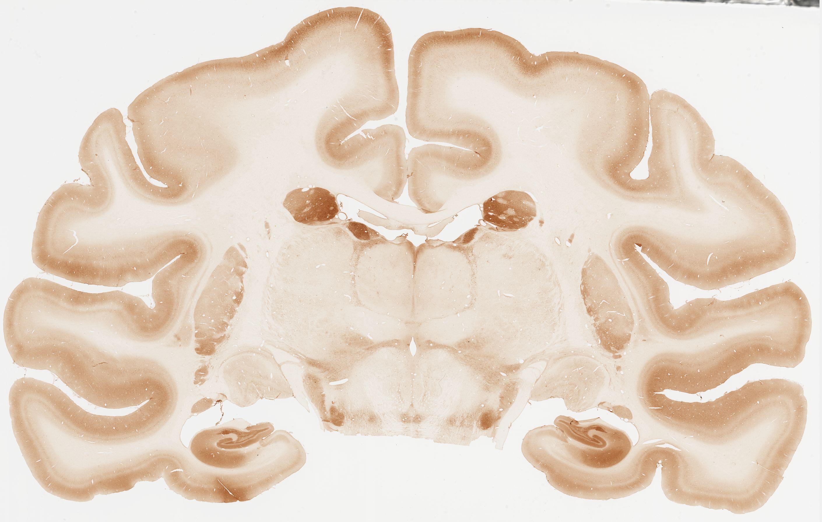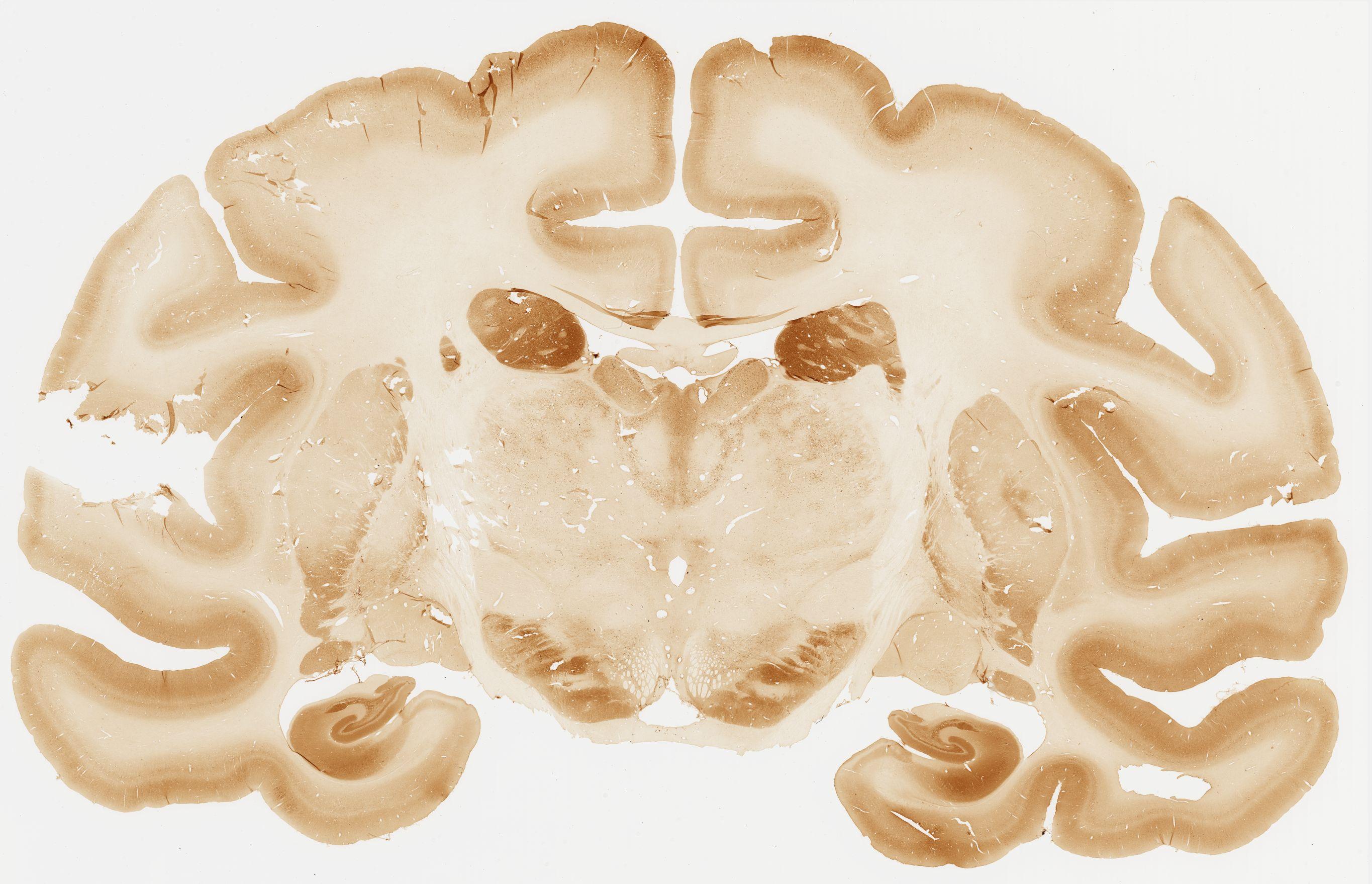 Datasets -> Macaca Fascicularis -> Calb, (Calbindin), coronal, immuno, Whole-Brain, adult [ Metadata ] · Source: Edward G. Jones